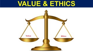 The document explores the concepts of values and ethics, defining them and highlighting their differences, with a focus on their application in business and banking. It lists common unethical acts and outlines the importance of maintaining ethical standards in banking to gain public trust and ensure customer protection. Ultimately, it emphasizes that values and ethics are essential for the integrity and functionality of the banking sector.