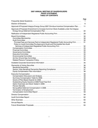 The document announces the annual meeting of shareholders of Integrys Energy Group, Inc. to be held on May 17, 2007. Shareholders will vote on five items: 1) Electing five directors to three-year terms, 2) Approving the Integrys Energy Group 2007 Omnibus Incentive Compensation Plan which authorizes 3.5 million shares for future grants, 3) Approving an amendment to the Integrys Energy Group Deferred Compensation Plan to authorize an additional 700,000 shares under the plan, 4) Ratifying the selection of Deloitte & Touche LLP as the independent registered public accounting firm, and 5) Any other business properly brought before the meeting. Share