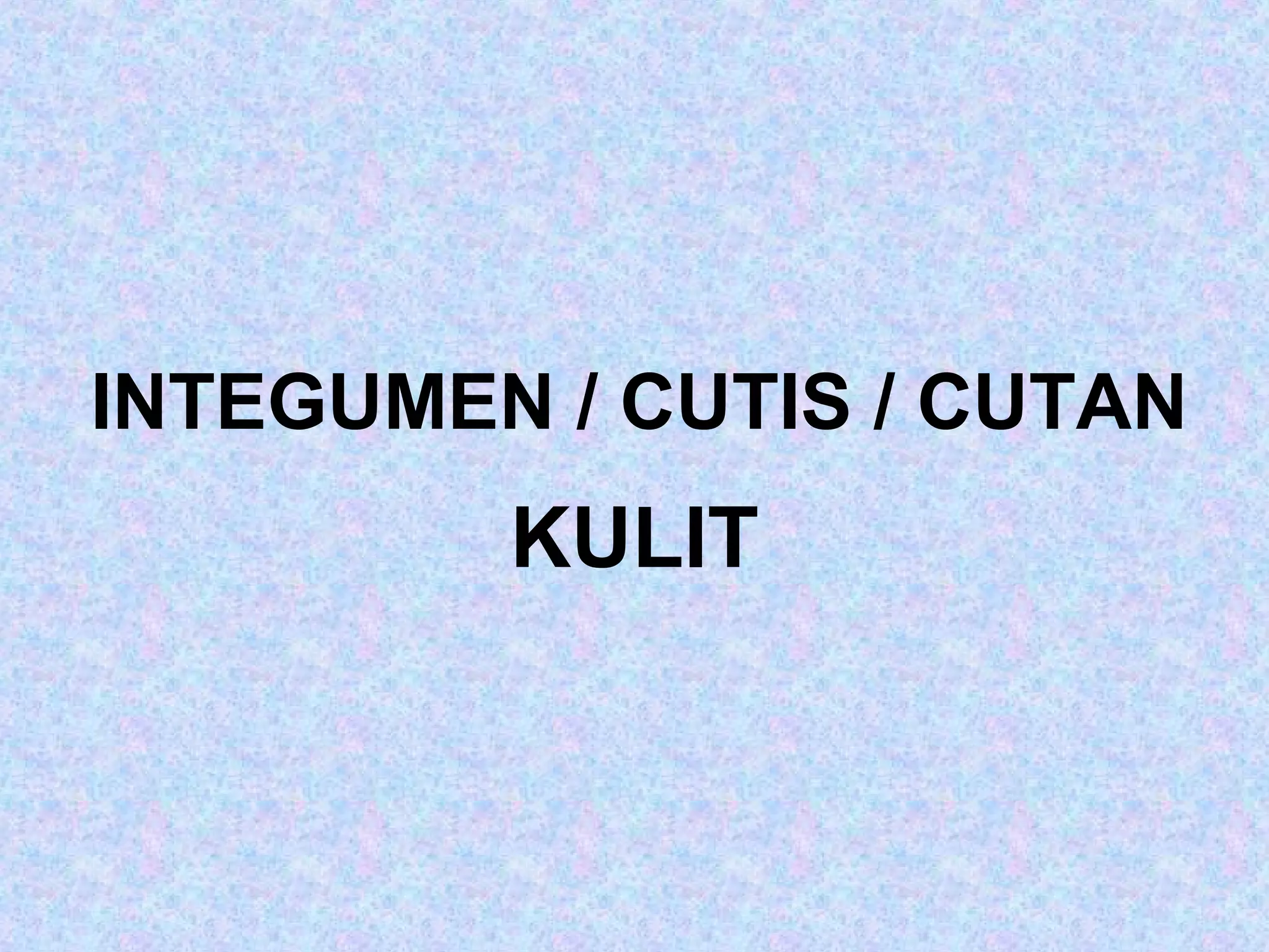 Dokumen ini menjelaskan tentang sistem integumen pada vertebrata, yang terdiri dari epidermis dan dermis, serta modifikasi yang ada seperti kelenjar dan spesialisasi permukaan. Fungsi kulit meliputi perlindungan, alat pembela diri, pertukaran zat, dan menarik perhatian individu lain. Selain itu, terdapat rincian tentang struktur dan komposisi kulit serta berbagai derivatnya seperti rambut, bulu, dan kelenjar.