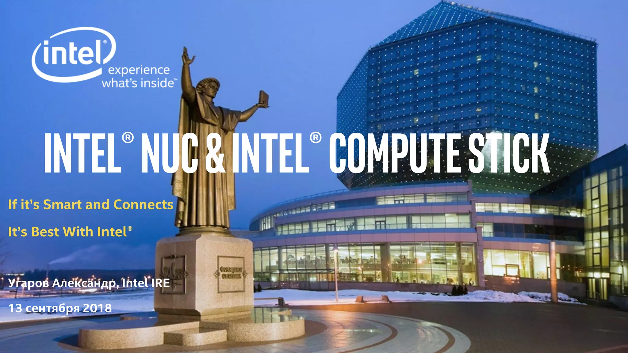 Документ представляет информацию о продуктах Intel, таких как мини-ПК Intel NUC и Intel Compute Stick, и их применении в различных областях, включая бизнес, игры и создание контента. В нем также обсуждаются характеристики производительности и стандарты, используемые для оценки эффективности продуктов, при этом подчеркиваются ограничения и условия использования. Intel отказывается от ответственности за ущерб, возникающий в результате использования материалов, и указывает на возможность изменений в информации без предварительного уведомления.
