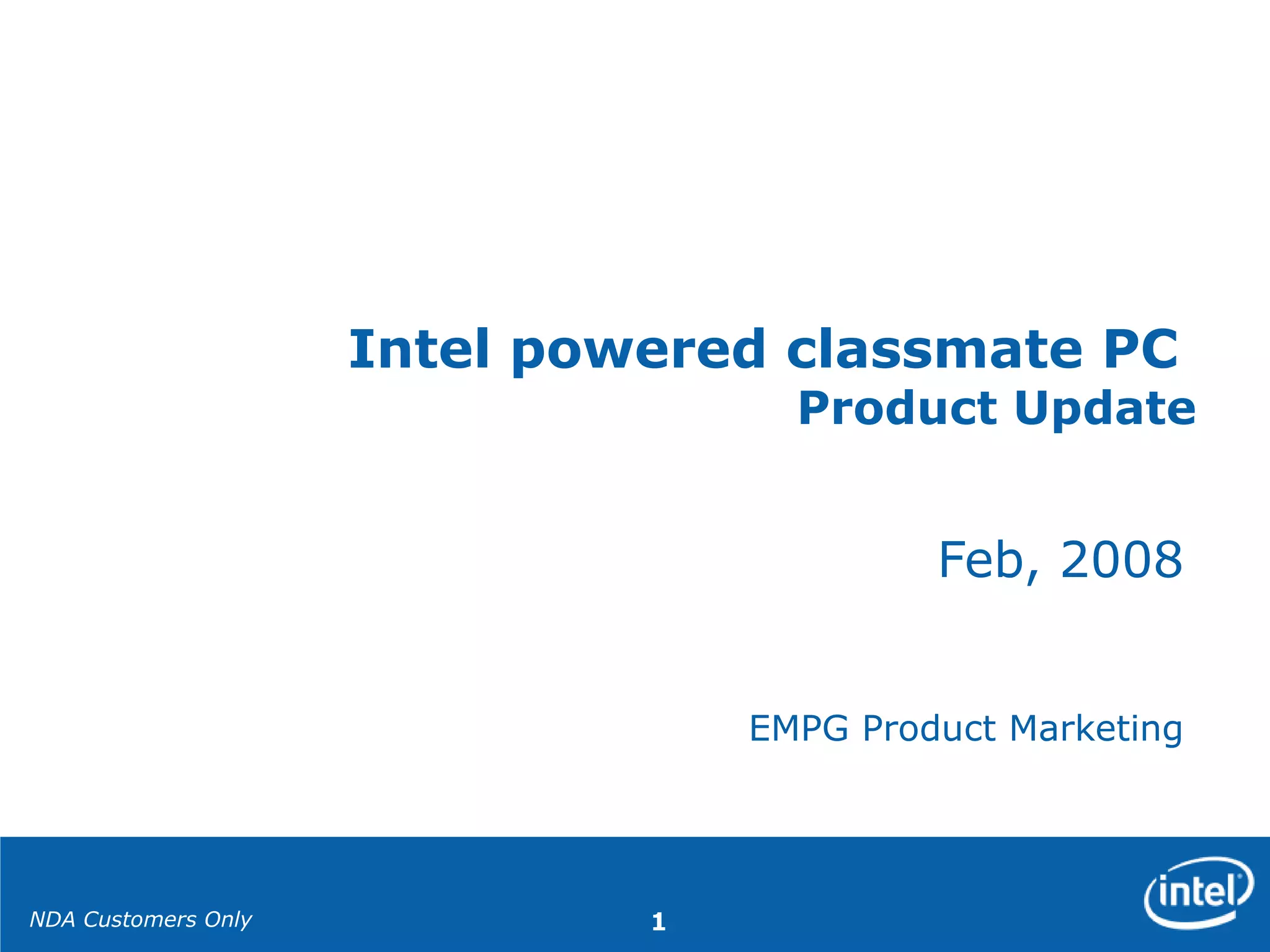 This document provides information about Intel's classmate PC product update. It includes: