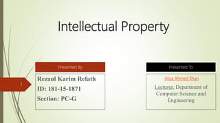 This document discusses different types of intellectual property protection. It outlines four main types: copyright, which protects original creative works; patents, which protect inventions; trademarks, which protect brands and logos; and trade secrets, which protect confidential business information. For each type, it provides a definition and overview of the rights and protections offered. The document is intended to introduce the key concepts of intellectual property law.