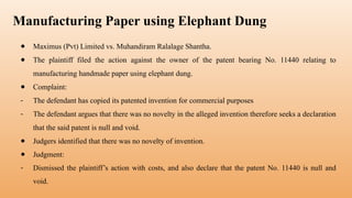 ● Commercial HighCourt – IP Law – judgment on patent rights – manufacturing paper using elephant dung. (2019, July 3). Http://Sladvocacylk.Com/. Retrieved January 4, 2022, from
