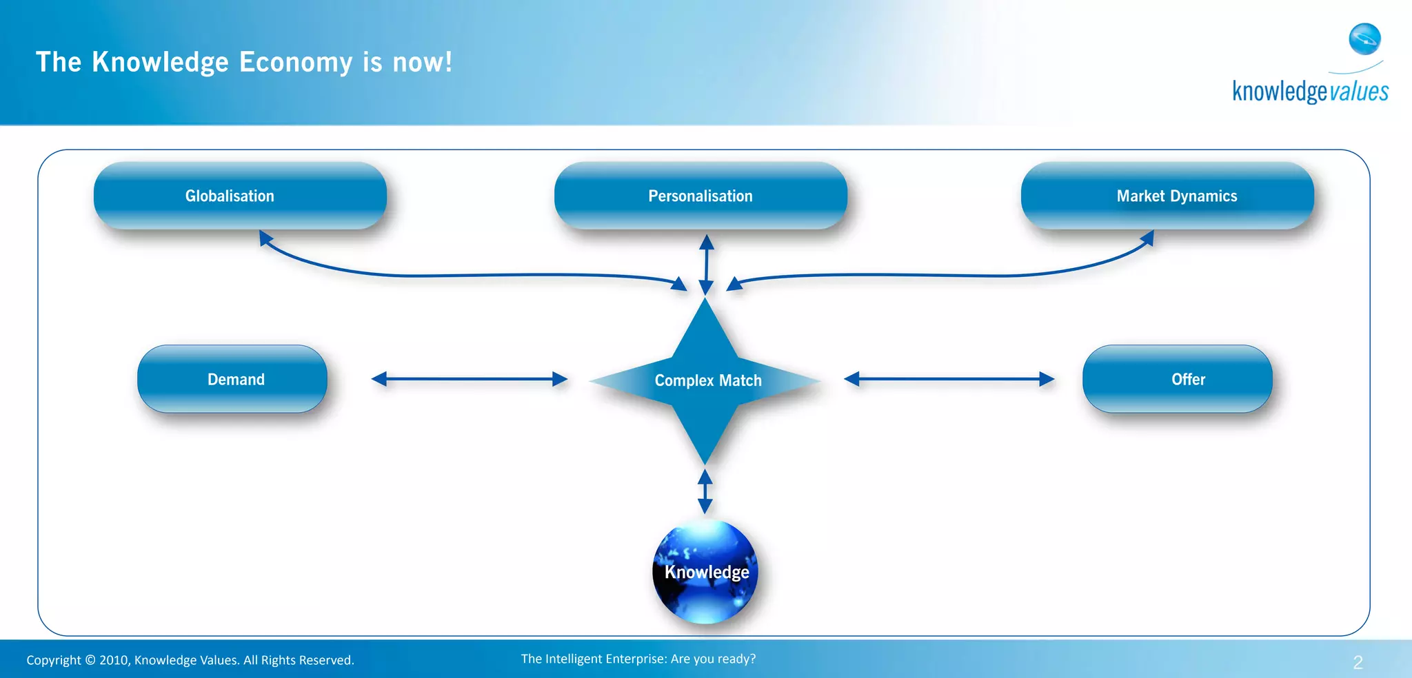 The document discusses the need for enterprises to transform into intelligent enterprises through implementing a lean, agile and learning knowledge infrastructure. It promotes using Advanced Knowledge Services and Match Knowledge Technology to create transparent and goal-oriented knowledge flows that reduce costs and complexity while increasing agility, learning ability, and customer satisfaction. This would allow enterprises to optimize processes, collaboration and adaptability to market dynamics in a sustainable way.