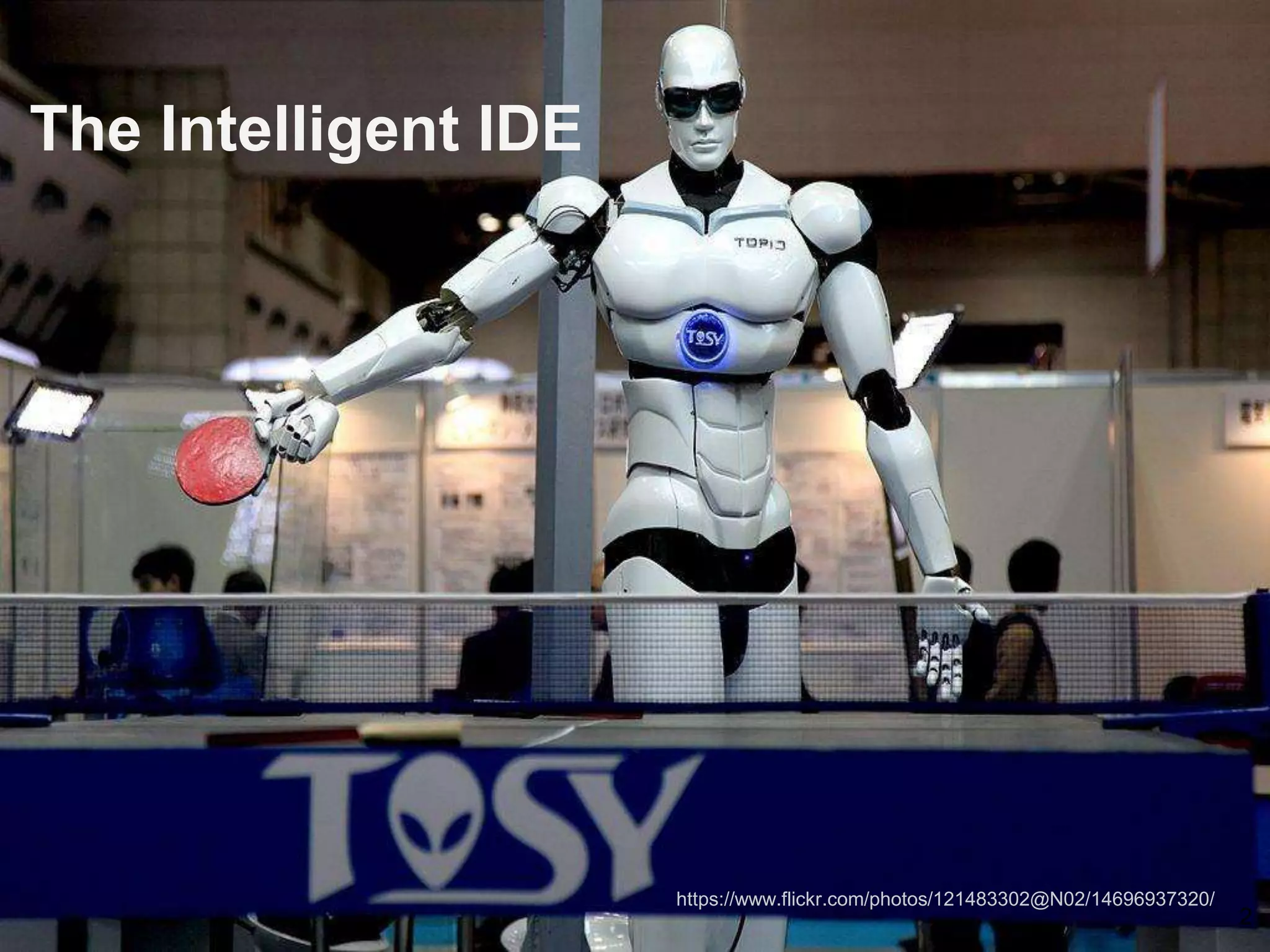 The document discusses IntelliJ IDEA, highlighting its two editions (Community and Ultimate) and various intelligent features such as intelligent search, build tools integration, version control tools integration, task management, advanced refactoring, and front-end support. It emphasizes support for Java development along with front-end technologies like JavaScript, CSS, and HTML. The conclusion raises the question of whether to choose IntelliJ IDEA or not.