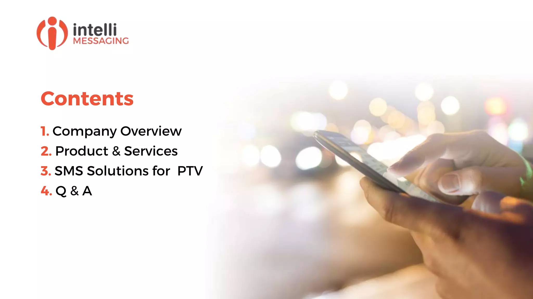 Intelli Messaging is a provider of enterprise SMS services, originally launched in 2000, known for its innovative messaging solutions including a patented reply functionality. The company emphasizes customer value, continuous growth, and service excellence, reflected in its significant increase in SMS volumes over the years. Its product offerings include SMS gateway access, mobile CMS, marketing solutions, and unique features such as voice-activated SMS and push messaging.