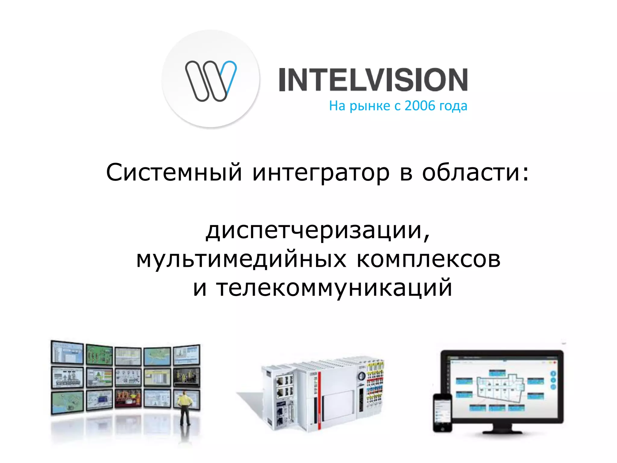 Intelvision, системный интегратор с 2006 года, специализируется на диспетчеризации, мультимедийных комплексах и телекоммуникациях, реализовав более 30 проектов в различных отраслях. Компания предлагает услуги по внедрению систем 'под ключ', включая проектирование, сборку и пусконаладочные работы, а также является партнёром Schneider Electric и Beckhoff. Intelvision трижды выиграла премию 'Hi-Tech Building Awards' и внедрила платформу SCADA SmartUnity на более чем 20 объектах.