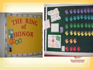 This document provides an agenda and overview for a workshop on promoting social emotional competence through individualized intensive interventions for challenging behaviors. The workshop teaches participants to understand the difference between positive behavior support (PBS) approaches and traditional discipline, identify methods to determine the function of challenging behaviors, and use interview and observation data to develop behavior hypotheses.