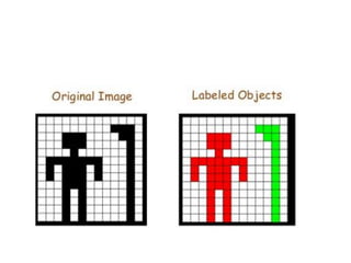 This document discusses various digital image processing techniques. It covers connected component labeling, intensity transformations including linear, logarithmic and power law functions. It also describes spatial domain vs transform domain processing and examples of enhancement techniques like contrast stretching and intensity-level slicing. Finally, it discusses geometric transformations and image registration to align images.