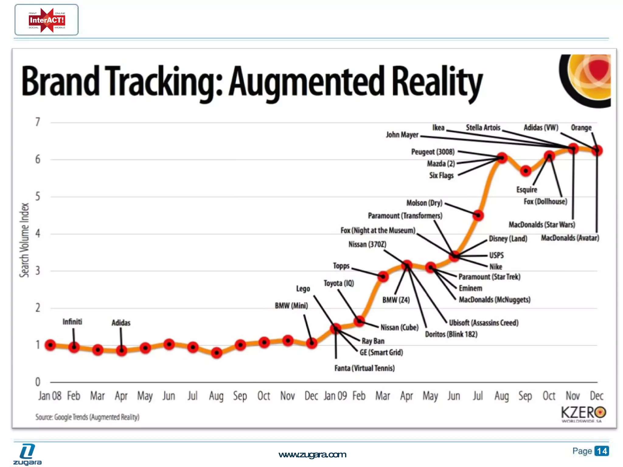 The document discusses augmented reality (AR) technologies created by Zugara to enhance online and mobile experiences. It introduces several of Zugara's AR solutions including ZugMO for motion capture interface, ZugSTAR for collaborative AR video conferencing, and ZugMUG for facial tracking. The document also provides statistics on growing AR markets and adoption of technologies like webcams that enable AR experiences.
