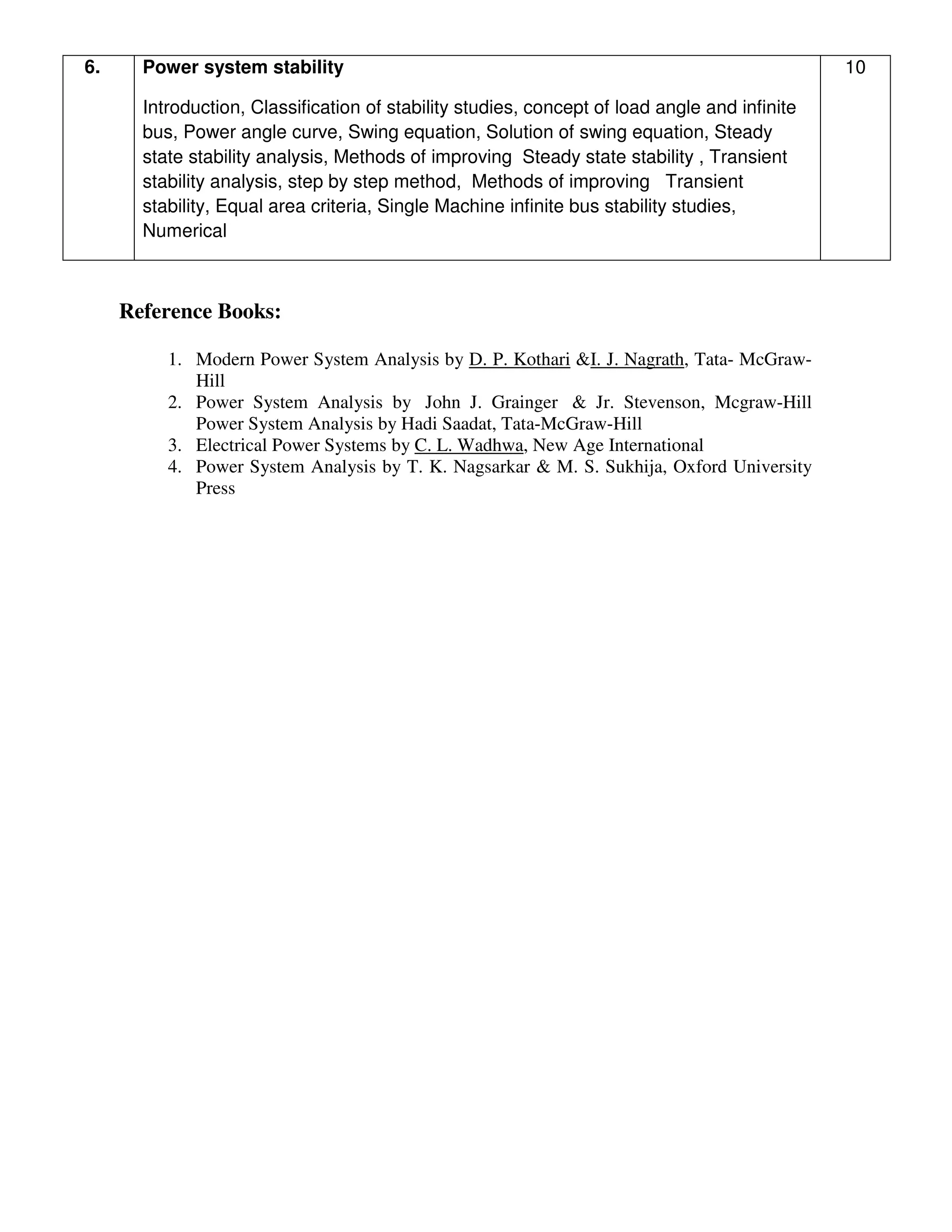 4) Economic operation of power generators and transmission losses calculation.