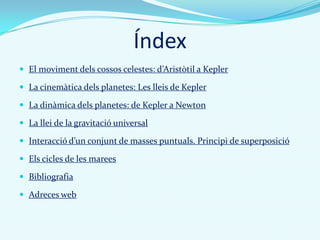 tenen aquest moviment. Partint de les lleis de Kepler, Newton va enunciar la llei de gravitació universal, amb la