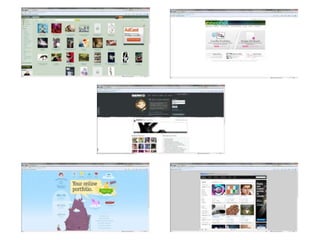 The document discusses different online communities for creative professionals, including DeviantArt, Coroflot, Shown'd, and Carbonmade. It focuses on Behance, describing it as a free platform for top creative professionals launched in 2007. It provides a timeline of Behance's launches and updates between 2007-2010, including new sites, apps, conferences, and programs. It lists the URLs of Behance and related sites catering to specific creative fields.