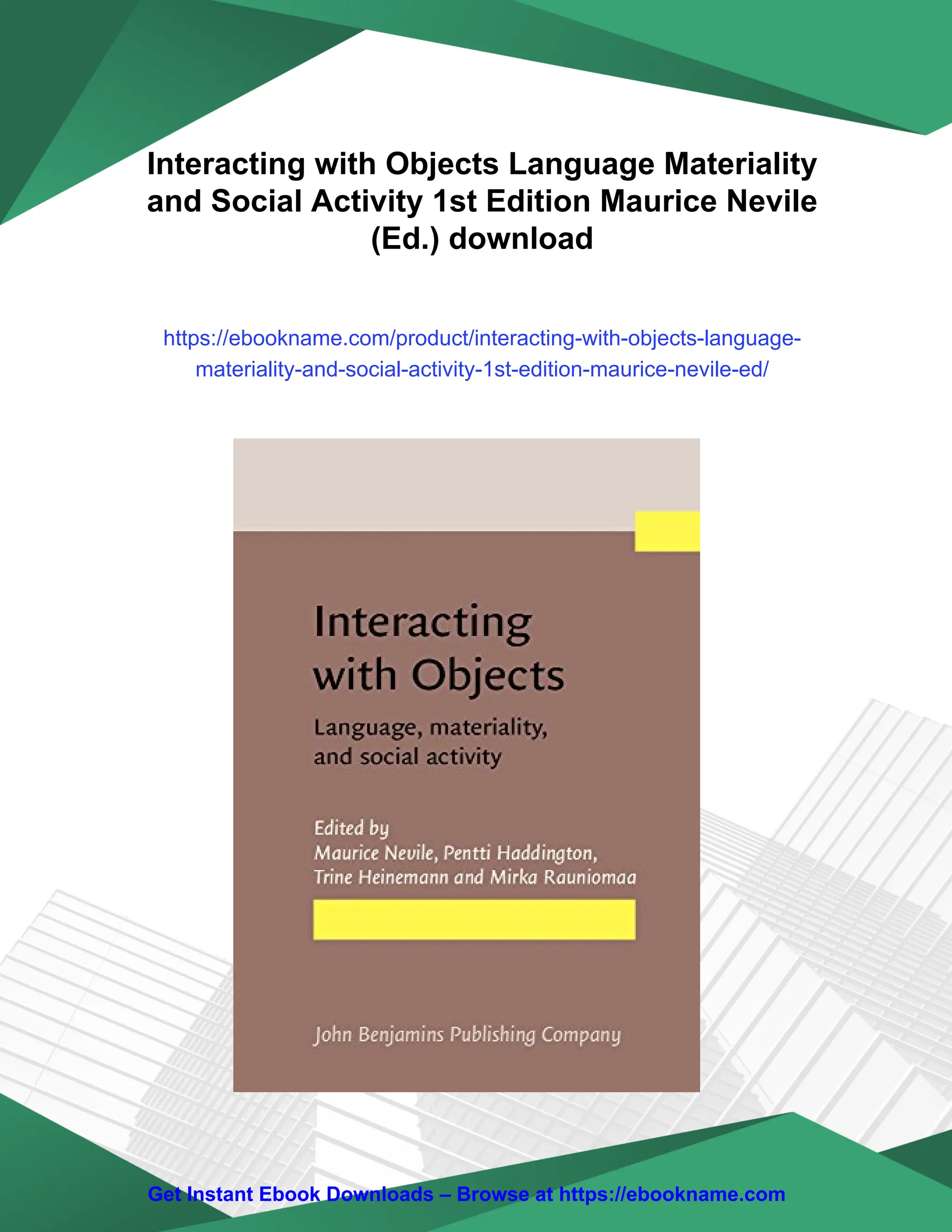 Interacting with Objects Language Materiality and Social Activity 1st Edition Maurice Nevile (Ed.)