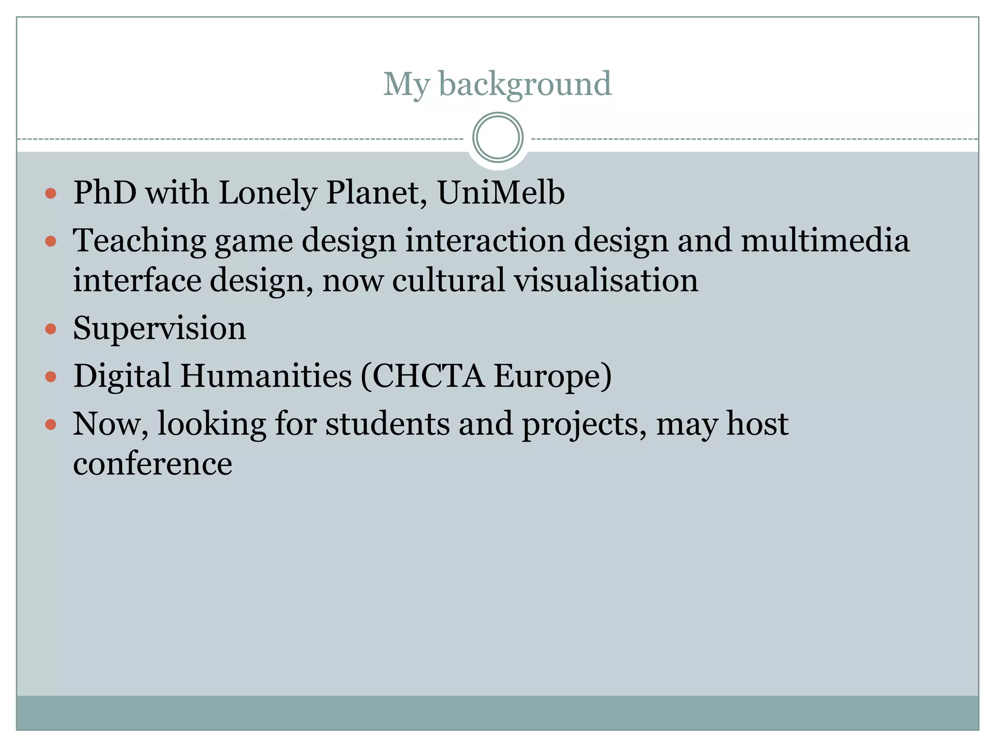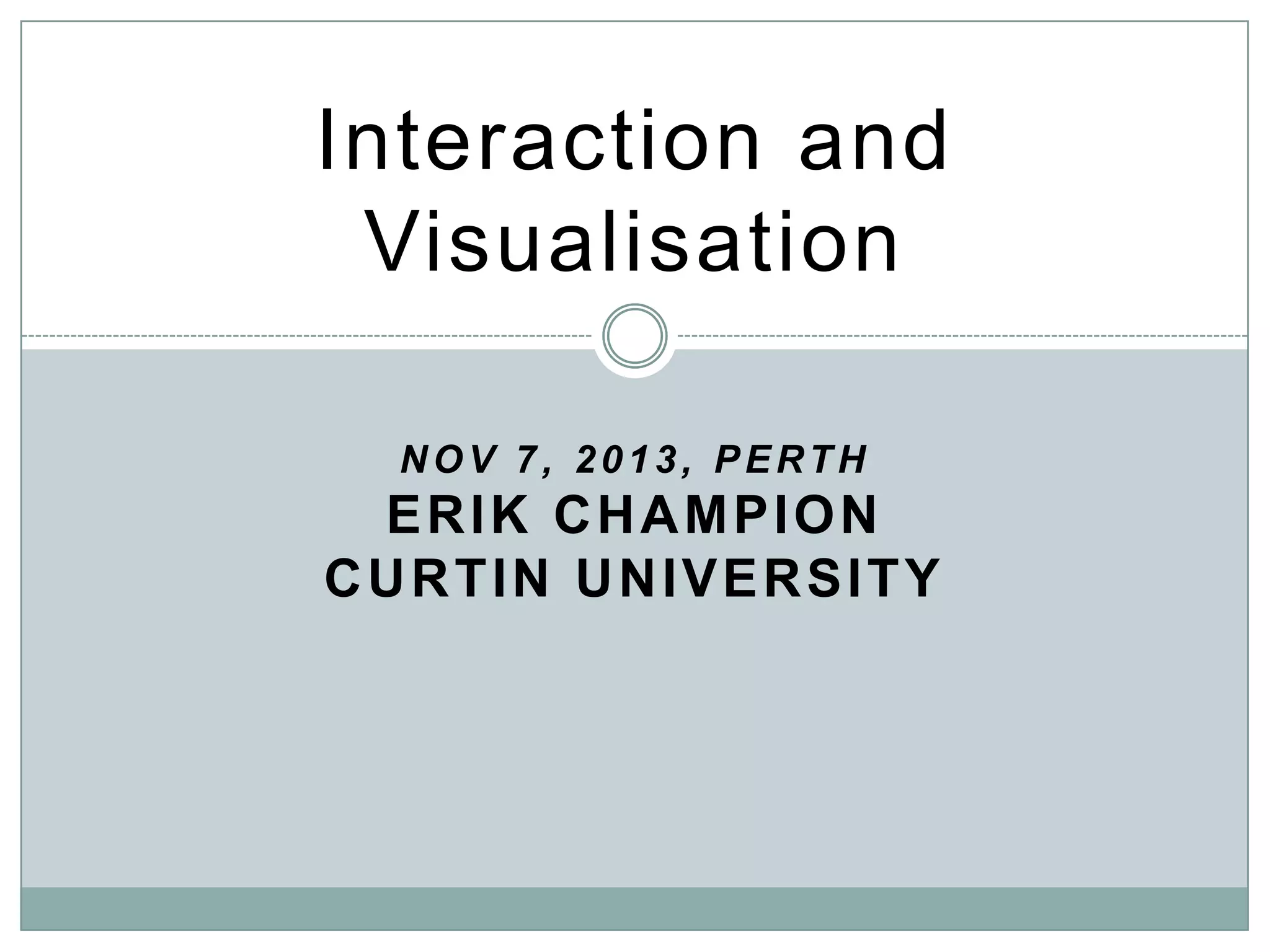 1. Erik Champion is a professor interested in using digital technologies like virtual reality, game engines, and interactive interfaces to interpret past cultures and sites.