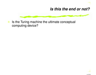 The document proposes a new type of P system called Interaction P Systems that are meant to model interaction and concurrency in a more primitive way than sequential computing models like Turing machines. Interaction P Systems would use interaction grammars and multiset rewriting rules to process continuous streams of data from their environment. They are intended to operate indefinitely without termination, producing partial results over time. The document suggests these systems may be more computationally powerful and better able to model living organisms compared to conventional P systems. It provides an initial definition and outlines future work needed to fully specify the model and explore its applications.