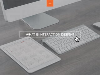Interaction design is a subset of UX design that comes from human-computer interaction and ergonomics fields. It is interrelated with UI design and focuses on user flows through a system at both the macro and micro levels. At the macro level, it is concerned with flows through the entire system, while at the micro level it focuses on individual interface affordances and how users can interact with them. Effective interaction design aims to evoke an emotional response from users through shaping and seducing them with an interface.