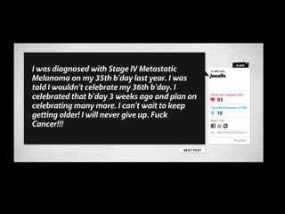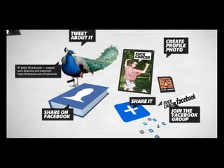 The document discusses the rapid growth and impact of social media, highlighting that 3 out of 4 Americans utilize social technology and that social media now accounts for a significant portion of online activity. It emphasizes the democratization of communication through social platforms, which allow ordinary people to shape discourse. Additionally, it explores strategies for businesses to stand out in this competitive landscape, underscoring the importance of interaction and creative campaigns.