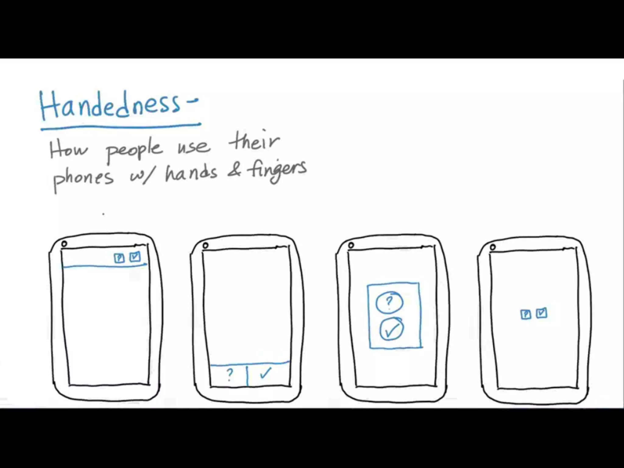 This document discusses various topics related to mobile app design including user experience (UX), user interface (UI), interaction design, user constraints like limited data/battery and screen size, and using context like location to improve the user experience. It provides examples of a pizza ordering app and making ATM machines smarter. It also covers design patterns and principles like focusing on user needs and testing designs through feedback.
