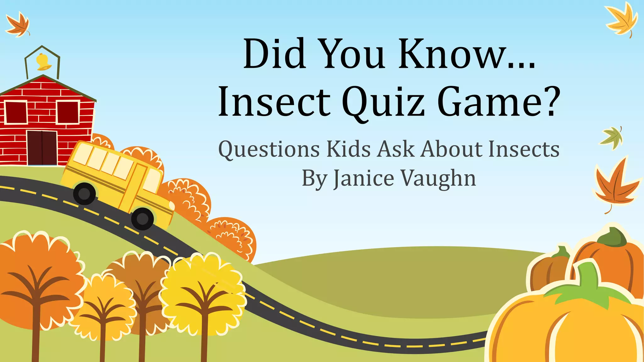 This document describes an insect quiz game that is played by a first grade teacher and students during nature walks in the spring. The game involves students finding and examining insects in their natural habitat, collecting a few specimens, and then answering multiple choice questions about insects. The questions cover topics like the number of butterfly species worldwide, whether any bugs are extinct, the name for someone who studies insects, the name of invisible insects, why bees are black and yellow, and which option listed is not an insect. The document provides the questions, multiple choice answers, and later reveals the correct answers along with short informative statements about each topic.