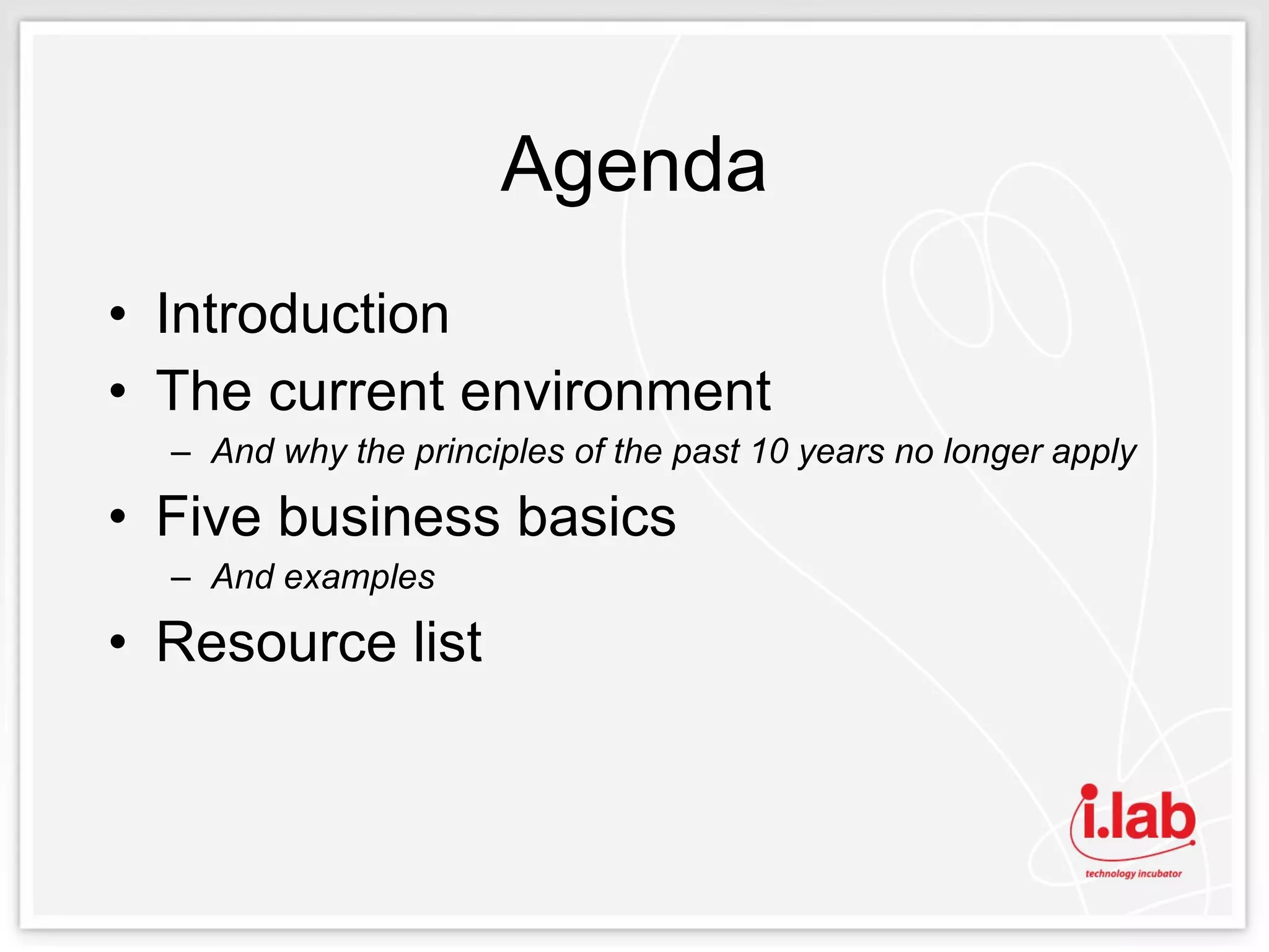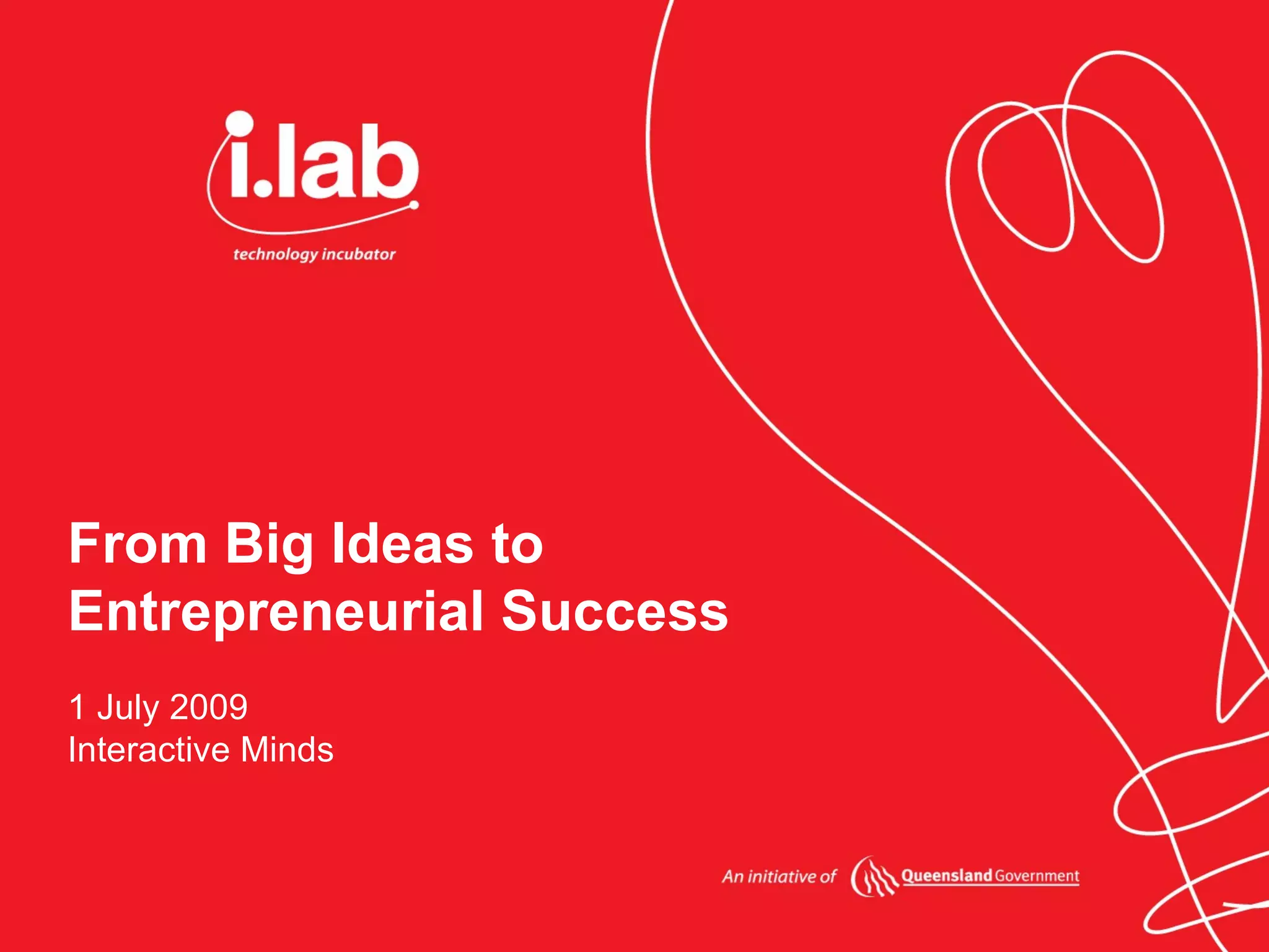 The document summarizes what services the i.lab Technology Incubator can provide for start-up companies. It offers resources and business support services to help early-stage, high-growth potential tech companies succeed. These services include office space, networking opportunities, marketing assistance, capital raising support, coaching, mentoring and more. The incubator aims to accelerate company development and help create sustainable businesses that will generate jobs and economic growth.
