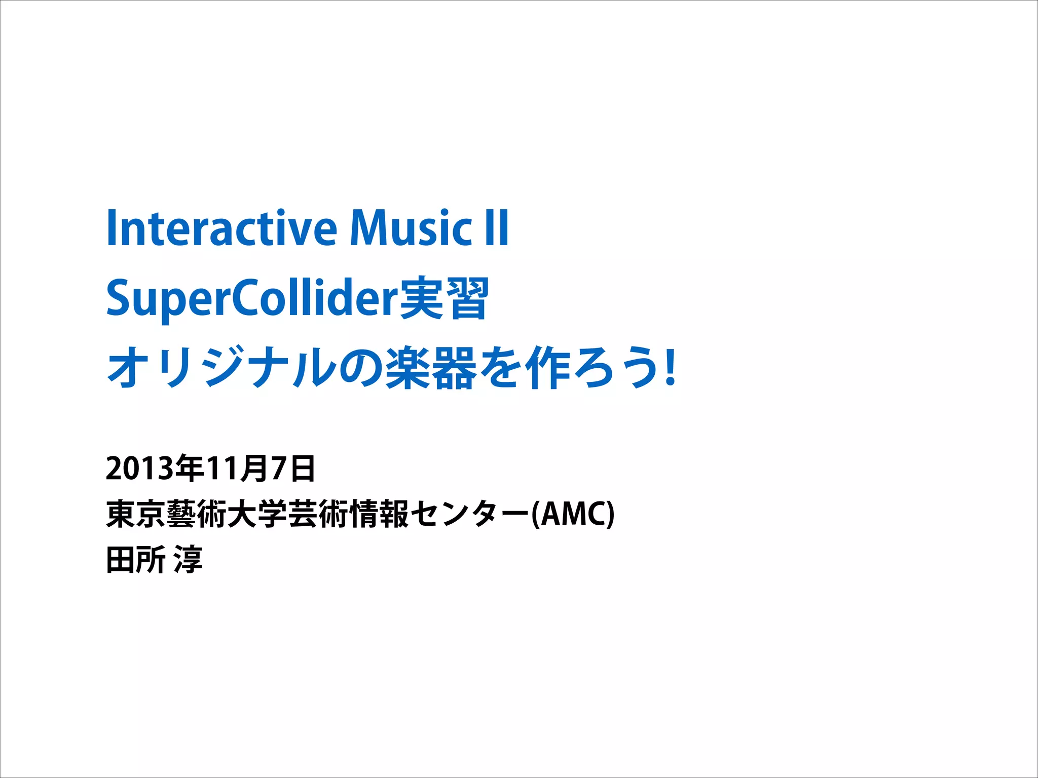 Interactive Music II SuperCollider実習 オリジナルの楽器を作ろう! 2013年11月7日 東京藝術大学芸術情報センター(AMC) 田所