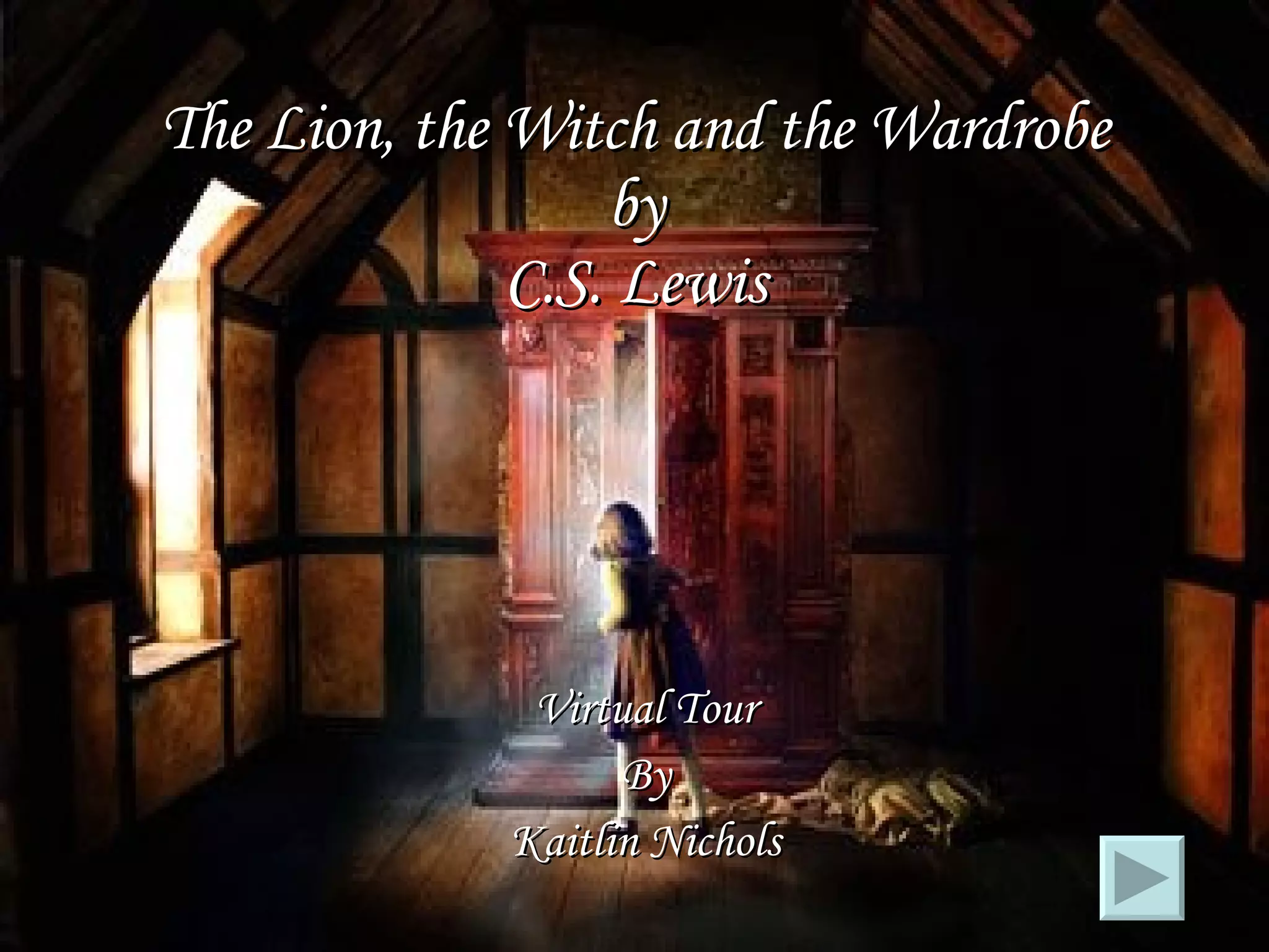 The document provides a summary of chapters 1-9 of The Lion, the Witch and the Wardrobe by C.S. Lewis. It describes how the Pevensie siblings discover the magical land of Narnia through a wardrobe. Lucy is the first to enter Narnia and meets the faun Mr. Tumnus. Edmund later enters and meets the White Witch, who tricks him with Turkish Delight. The siblings work to save Mr. Tumnus from the Witch with the help of the beavers. However, Edmund betrays the group by going to the Witch.
