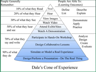 This document discusses interactive teaching strategies to engage learners of all styles. It identifies the main learning styles as visual, auditory, and kinesthetic. Interactive teaching involves both the facilitator and learners, with questions and hands-on activities to stimulate discussion. Group work is highlighted as an effective strategy, as learners retain more when they discuss and apply the material. A variety of interactive techniques should be used to maintain interest, assess understanding, and make the session participatory.