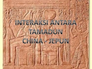 Dokumen ini membincangkan tentang interaksi antara berbagai tamadun sepanjang sejarah yang membawa kesan positif dan negatif, termasuk pengaruh budaya, agama, dan teknologi. Penekanan diberikan kepada peranan pemimpin, kedudukan geografi, perkahwinan, dan perdagangan dalam mempromosikan interaksi yang aman dan memperkayakan tamadun. Contoh-contoh interaksi antara tamadun Islam, China, India, dan budaya lain turut diketengahkan, menunjukkan ciri-ciri asimilasi dan konflik yang berlaku.