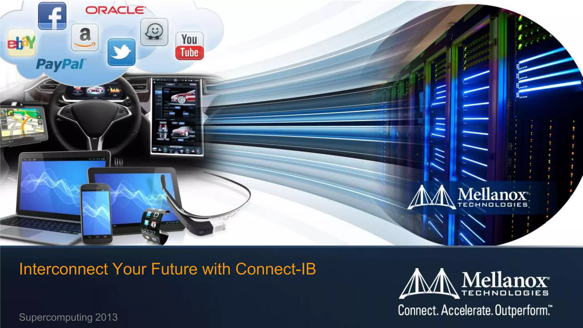 Mellanox provides end-to-end interconnect solutions including ICs, adapter cards, switches, software, and cables to connect data centers, metro areas, and WANs. Mellanox's Connect-IB adapters deliver the highest performance and ROI for clustering, with the world's first 100Gb/s adapter card and a 4x increase in messages per second over competitors. Connect-IB also provides the highest application performance, with up to 200% faster performance than competitors for WIEN2k and 54% faster performance for WRF simulations. Mellanox's GPUDirect RDMA technology further accelerates GPU-GPU communication with 69% lower latency and 3x higher throughput between nodes.