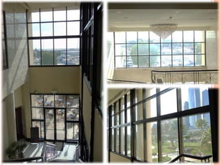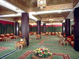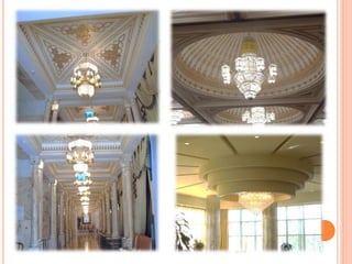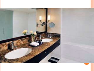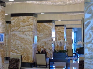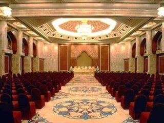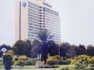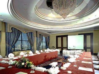 The Intercontinental Hotel in Abu Dhabi was established in 1980 by Benjamin Thompson and is located on the beach near the city center. It was the site of the first Gulf Cooperation Council summit in 1981. The hotel has 387 guest rooms and 54 suites and features amenities like a gym, outdoor pool, and tennis courts. It underwent renovations from 2006-2007 to modernize the rooms and suites while keeping the original exterior design. The ballrooms were left untouched as they hold historic significance from welcoming GCC leaders.