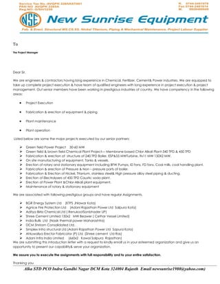 The engineering and contracting firm has extensive experience in chemical, fertilizer, cement, and power plant industries. They have qualified engineers and technicians capable of complete project execution and management. The company has successfully executed various greenfield and brownfield projects including power plants, chemical plants, boiler and turbine fabrication and erection, on-site equipment manufacturing, and piping installation. They are now seeking to partner with new organizations and offer their plant maintenance, operation, and fabrication services.