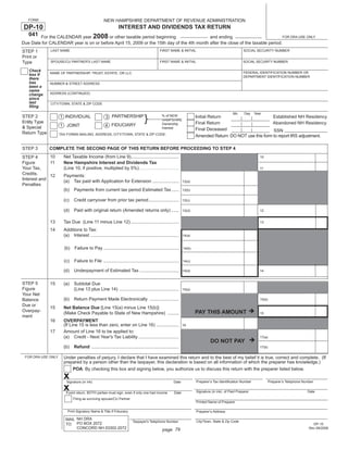 This document is a New Hampshire Department of Revenue Administration form for filing an Interest and Dividends Tax Return for the 2008 calendar year. It provides instructions for completing the two page tax return form, including who must file, when to file, how to report income and claim exemptions. It outlines common errors to avoid, such as failing to sign or pay any amount due. It also provides information on filing amended returns, reporting changes from federal audits, and where/how to obtain additional forms.