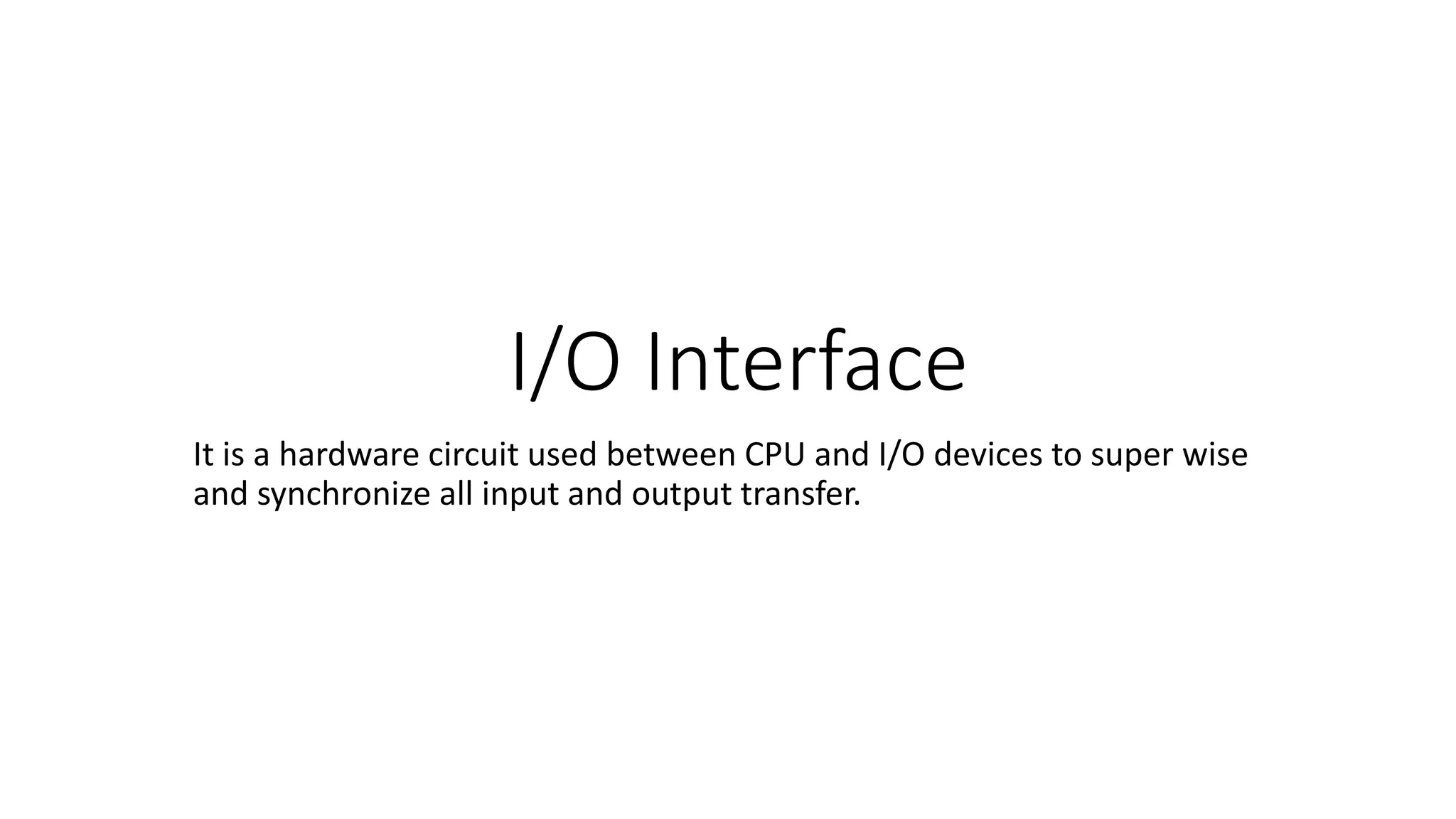1. I/O interfaces act as a hardware circuit between the CPU and I/O devices to synchronize data transfer.