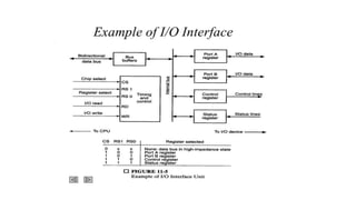 The document discusses input-output (I/O) interfaces in computers. It provides details on: