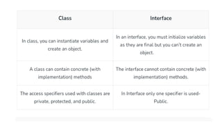 5) The abstract keyword is used to declare abstract class. The interface keyword is used to declare interface.
