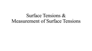 The document discusses interfacial phenomena, including surface tension, interfacial tension, and surface free energy, describing their measurement methods and implications in liquid interaction. It explains concepts such as spreading coefficients, surfactants, and adsorption processes, detailing how they influence surface activity and stability in various applications. Additionally, it covers the micellization process and the significance of contact angles in wetting behavior, providing insight into practical uses in fields like pharmacy and chemistry.