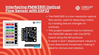 Learn how to connect a PMW3901 Optical Flow Sensor with an ESP32 to measure surface motion and movement without GPS! This project explains how to set up the sensor using SPI communication, helping create advanced robotics like autonomous drones and smart robots.