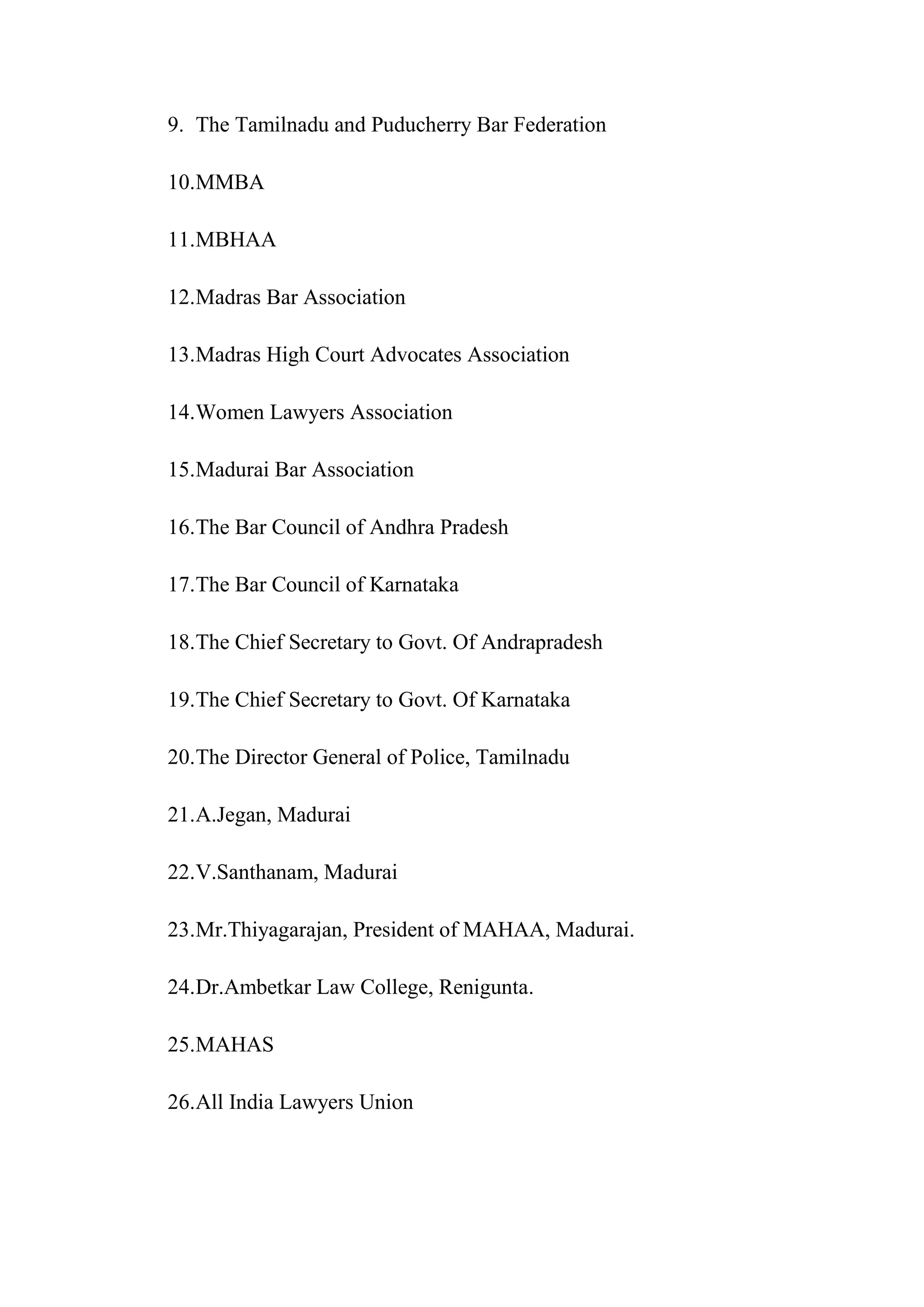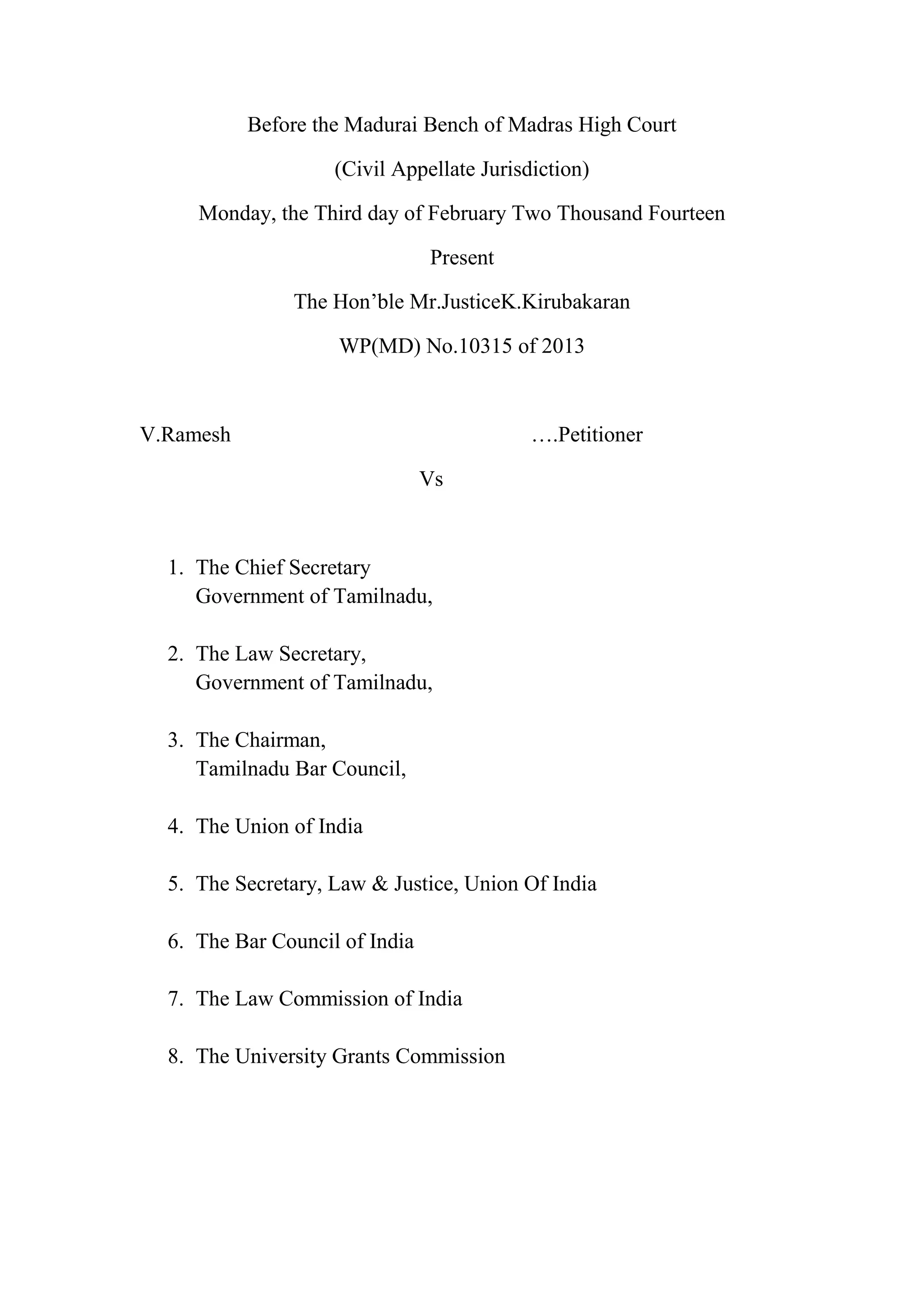 This document is an order from the Madras High Court regarding a petition filed about guidelines for enrolling law graduates from other states to the Bar Council of Tamil Nadu. The order notes examples provided of candidates enrolled despite criminal cases, misrepresentations, or violating age limit rules for law college admission. It directs the Bar Council of Tamil Nadu to investigate such violations in other enrollments, suspend candidates if needed, and remove them after inquiry if warranted based on the powers granted to Bar Councils in the Advocates Act and Legal Education Rules.