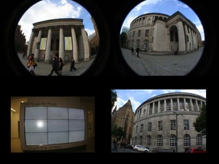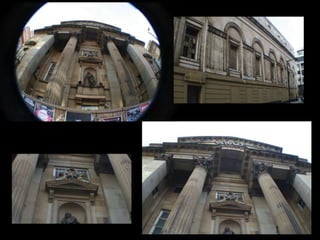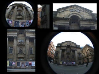 The Theatre Royal in Manchester opened in 1845 and operated as a theatre for 76 years until closing in 1921 due to growing competition from other theatres. The building is the oldest surviving theatre in Manchester and has since been used as a cinema, bingo hall, and nightclub. It has been unoccupied since 2012 but proposals have been made to restore it for public use again. The neoclassical building features a statue of Shakespeare at the entrance and has signs from its former uses still visible on the exterior.
