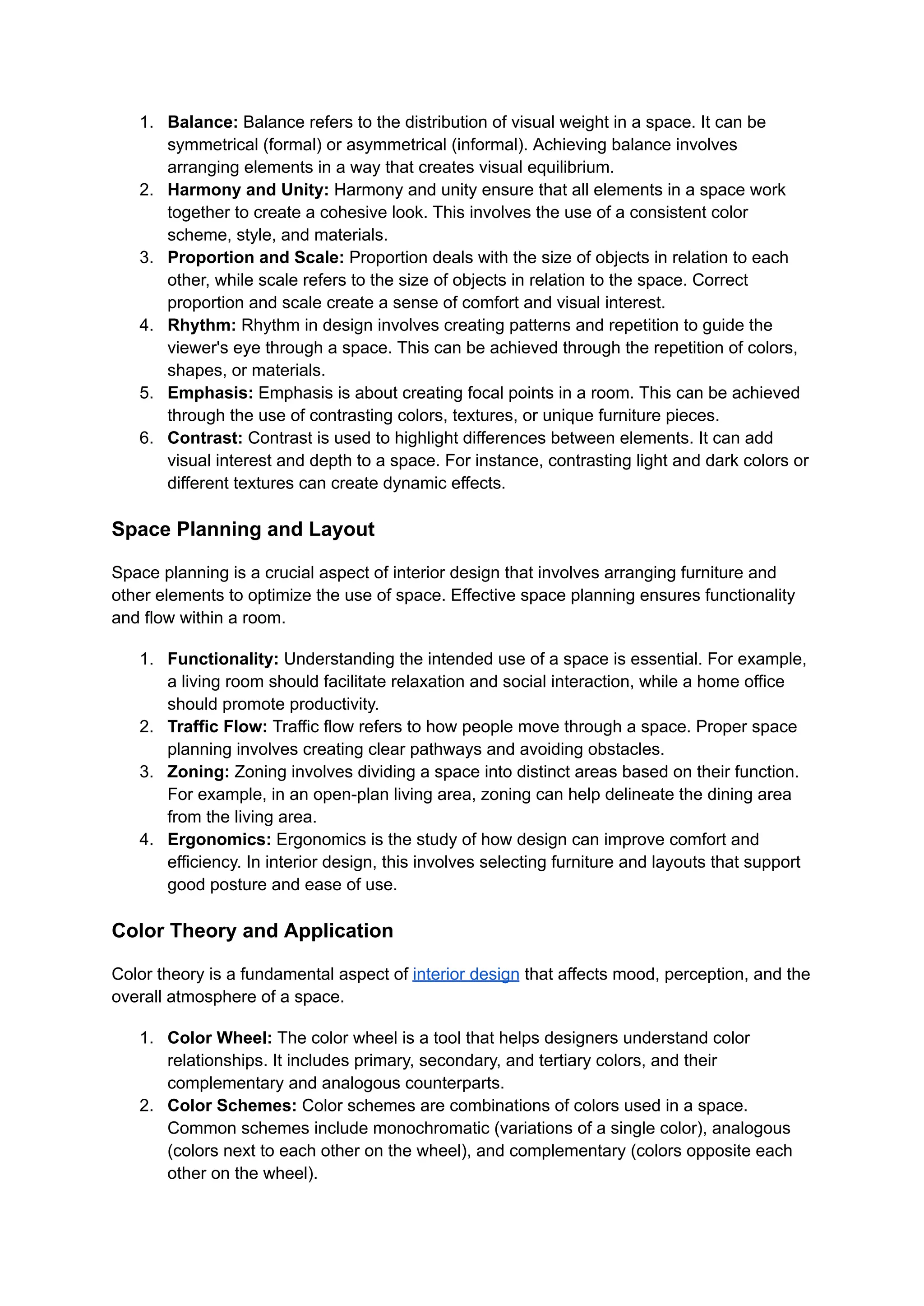 This document serves as a comprehensive guide to interior design for Bachelor of Design students, covering historical evolution, core principles, space planning, color theory, material selection, lighting design, and the role of technology. It emphasizes the importance of functionality, aesthetics, professional practice, and ethical considerations in creating spaces that enhance quality of life. Additionally, the document includes important multiple-choice questions to assist in preparation for exams and interviews in the field of interior design.