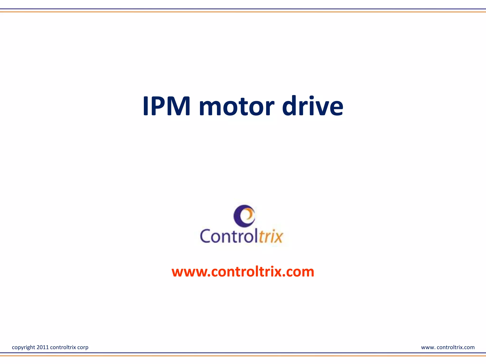 The document discusses the characteristics and advantages of interior permanent magnet motors (IPM) and sensorless vector control for permanent magnet synchronous motors (PMSM). It outlines the benefits of self-sensing technology and various mathematical models to enhance performance and efficiency, including improvements for low-speed operation and position control. Additionally, it highlights the expertise of ControlTrix in implementing advanced algorithms and hardware solutions for optimized motor drive applications.