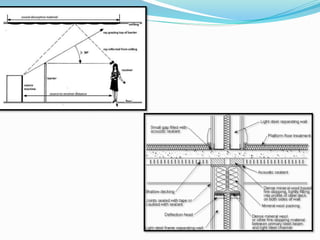 The document discusses various types of barriers in architectural design, focusing on air, sound, and visual barriers, alongside the importance of accessibility for individuals with disabilities. It highlights significant legislation and design modifications aimed at enhancing mobility and movement within homes and public buildings. Additionally, it explores lighting solutions, including skylights and different types of lamps, to improve living spaces.