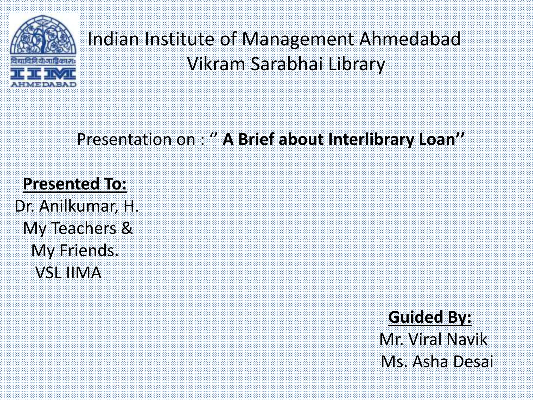 This presentation provides an overview of interlibrary loan. It discusses the need for interlibrary loan due to the tremendous growth of resources, lack of space in libraries, and limited budgets. The process of interlibrary loan involves both borrowing and lending books, articles, and other materials between libraries. Statistics are maintained to track interlibrary loan requests and responses. The goal is to quickly fulfill user requests and share resources between libraries.