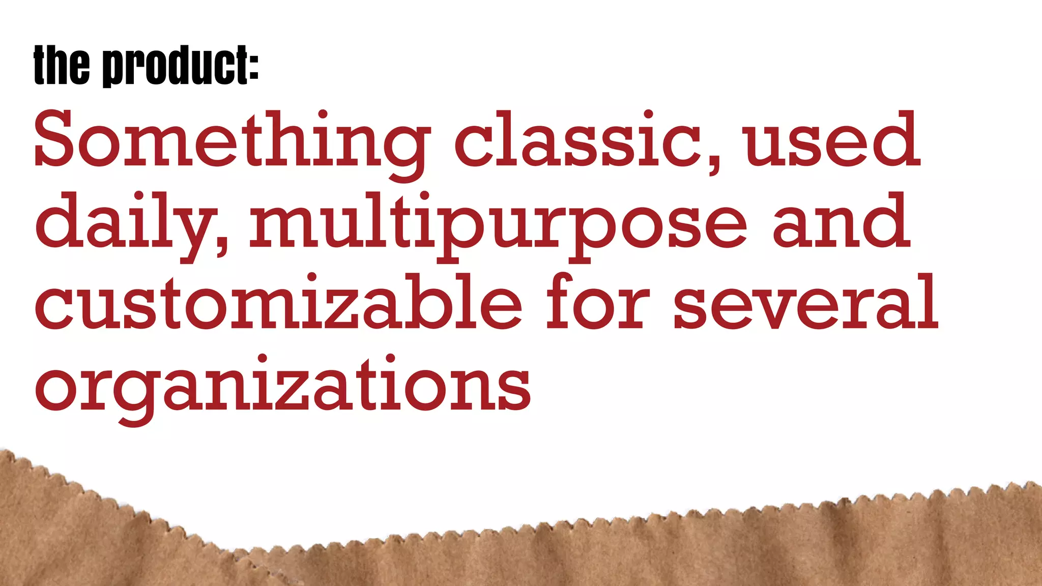 The document describes a product that is classic, used daily, and multipurpose. It can also be customized for use by several different organizations.