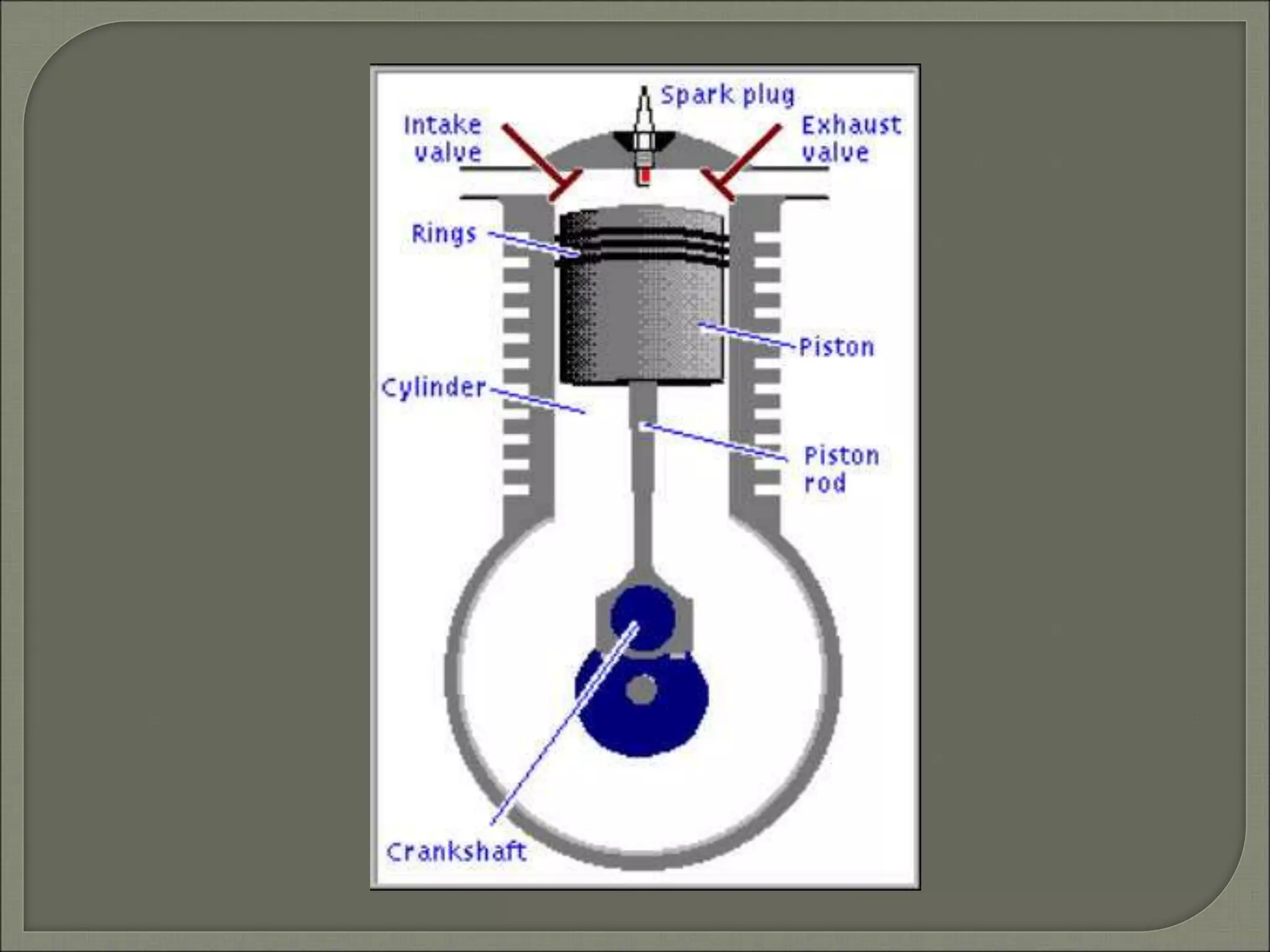 This presentation discusses the history and workings of internal combustion engines. It provides a timeline of important inventors, from the first working engine designed by Francois Isaac de Rivaz in 1807 to Otto and clerk's inventions of the two-stroke and four-stroke engines in 1876. The key components of an internal combustion engine are defined. The four strokes of the engine cycle - intake, compression, power, and exhaust - are explained in detail. Diesel engines are also briefly discussed as undergoing the same cycle but igniting fuel via compression instead of a spark plug. In conclusion, internal combustion engines have revolutionized modern life by powering machinery and vehicles.