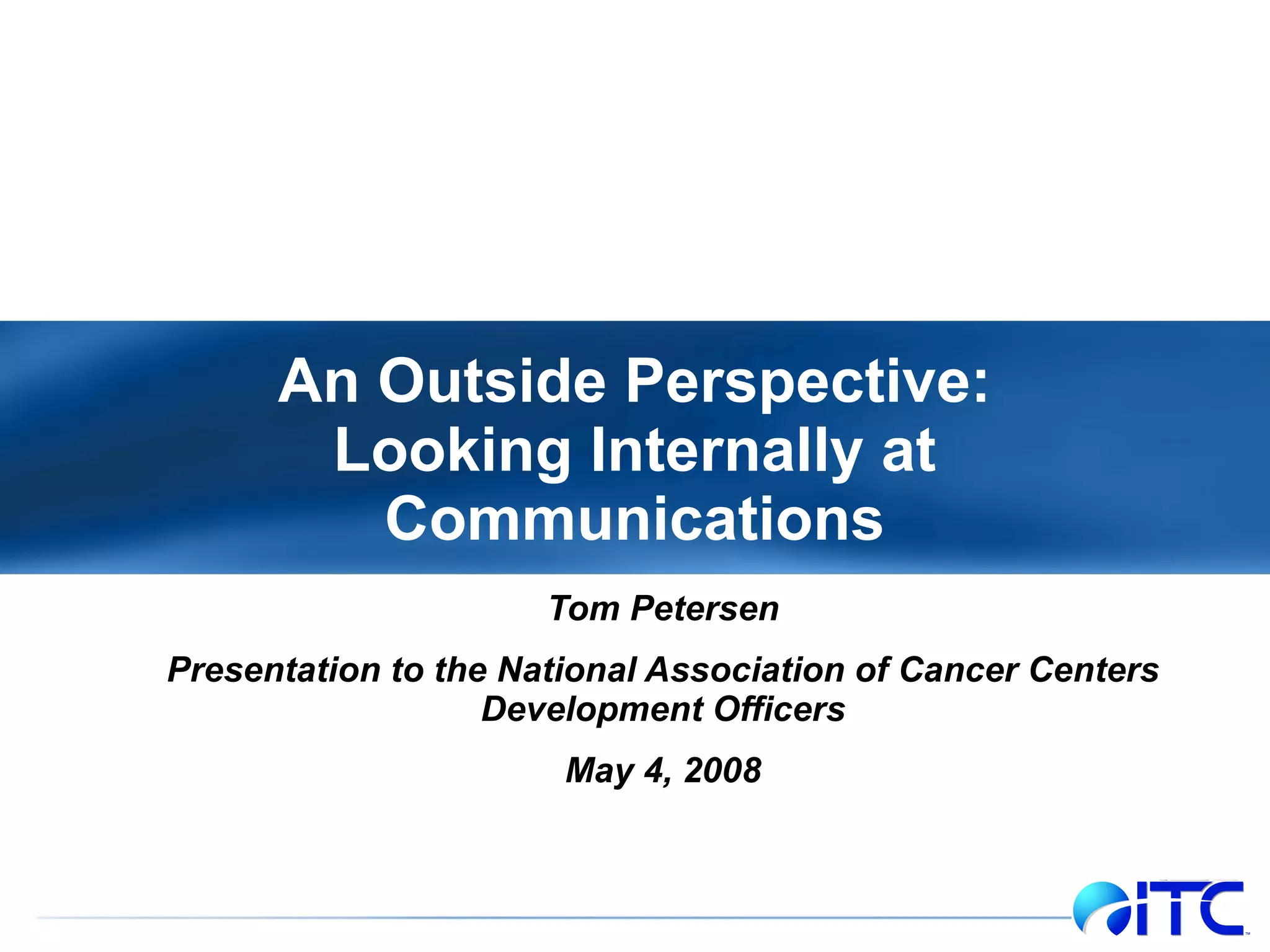 Tom Petersen gave a presentation on improving internal communications. He discussed that internal communications is important for employees to understand organizational goals and represent the organization well externally. Effective internal communications requires understanding the audience's needs and addressing "what's in it for me." Special situations like organizational changes, crises, and dealing with rumors also require tailored communications approaches. The presentation provided five tips for improving internal communications, such as focusing on the audience's interests and using consistent, impactful messages.