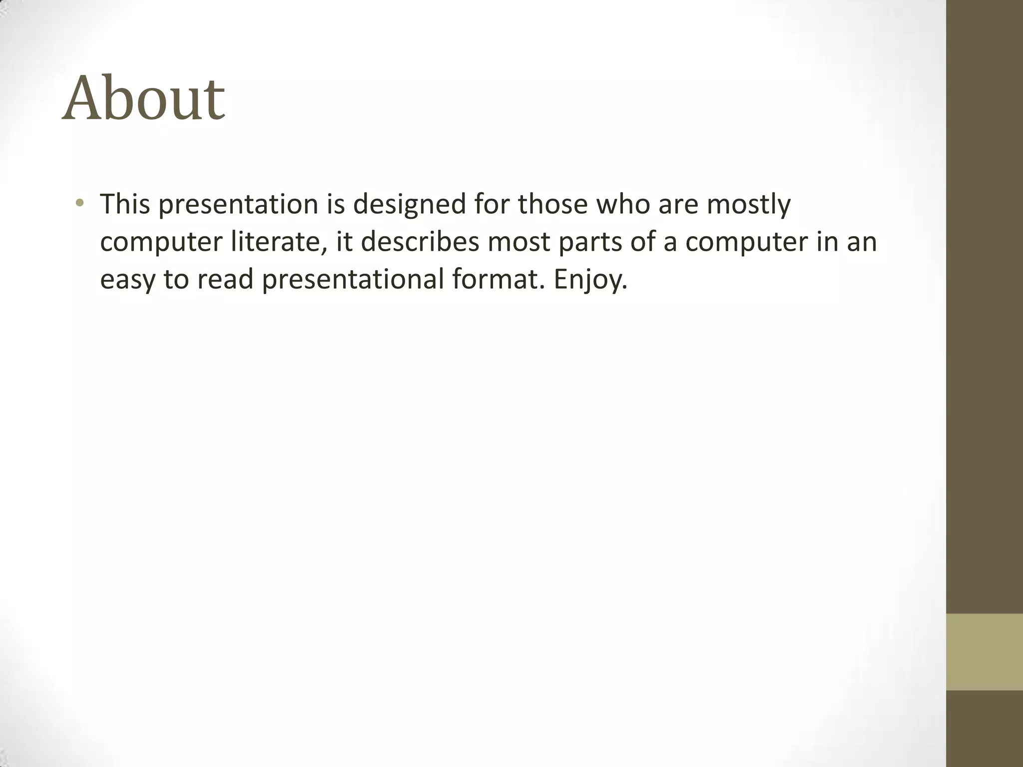 This presentation outlines various internal components of a computer for intermediate learners, focusing on their functions and applications. Key components discussed include memory cards, flash memory, hard drives, solid-state drives, power supplies, wireless cards, sound cards, processors, and motherboards. The document emphasizes the differences between these components regarding data storage, speed, and connectivity.