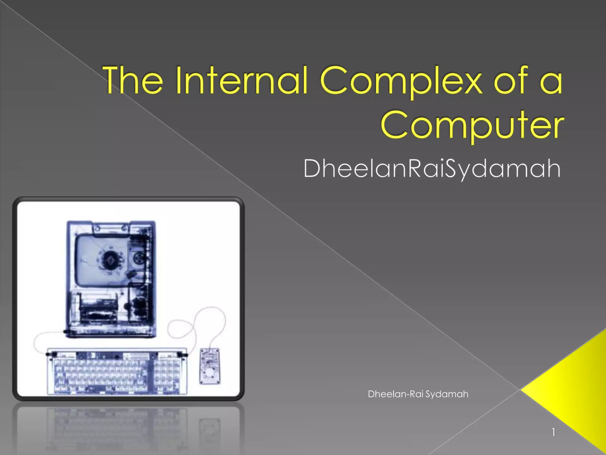 This presentation details the internal components of personal computers, including processors, memory types, adapter cards, storage devices, and input/output hardware. It aims to clarify concepts and enhance understanding of computer components, emphasizing technical specifications and functionalities. Key topics include CPU capabilities, types of RAM, and methods for connecting various devices.