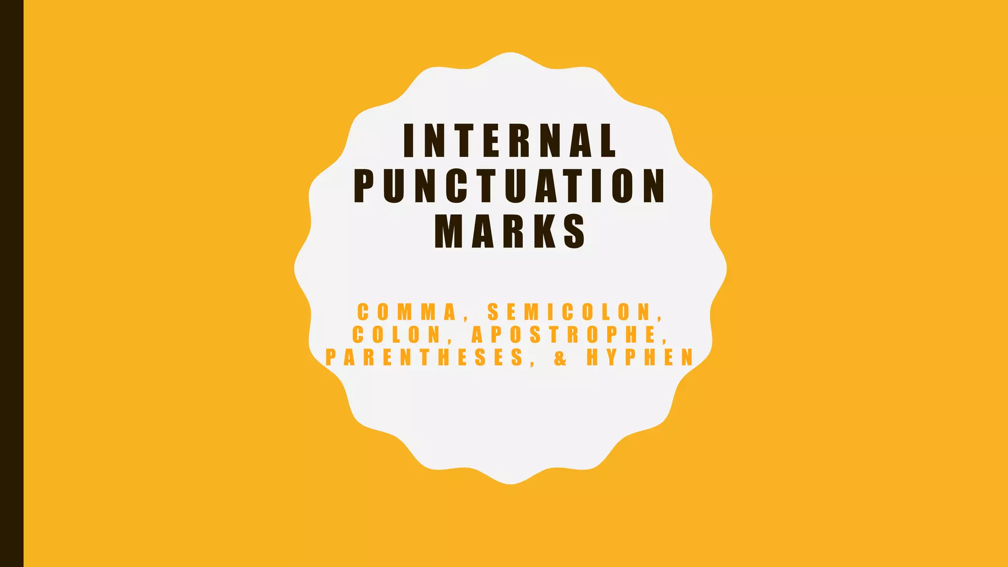 The document discusses several internal punctuation marks including the comma, semicolon, colon, apostrophe, parentheses, and hyphen. It provides rules and examples for using each punctuation mark correctly, such as using commas to separate items in a list or elements in a compound sentence. Proper punctuation is important for clarity and avoiding misunderstandings in written communication.